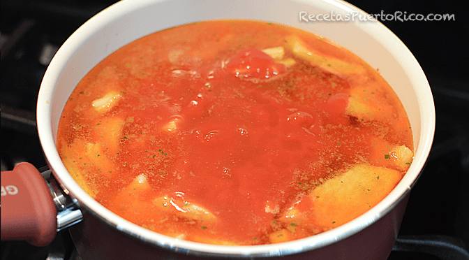 - Hierve todo en fuego medio por 45 a 60 minutos. El agua deberá reducir a una salsa roja sabrosa.