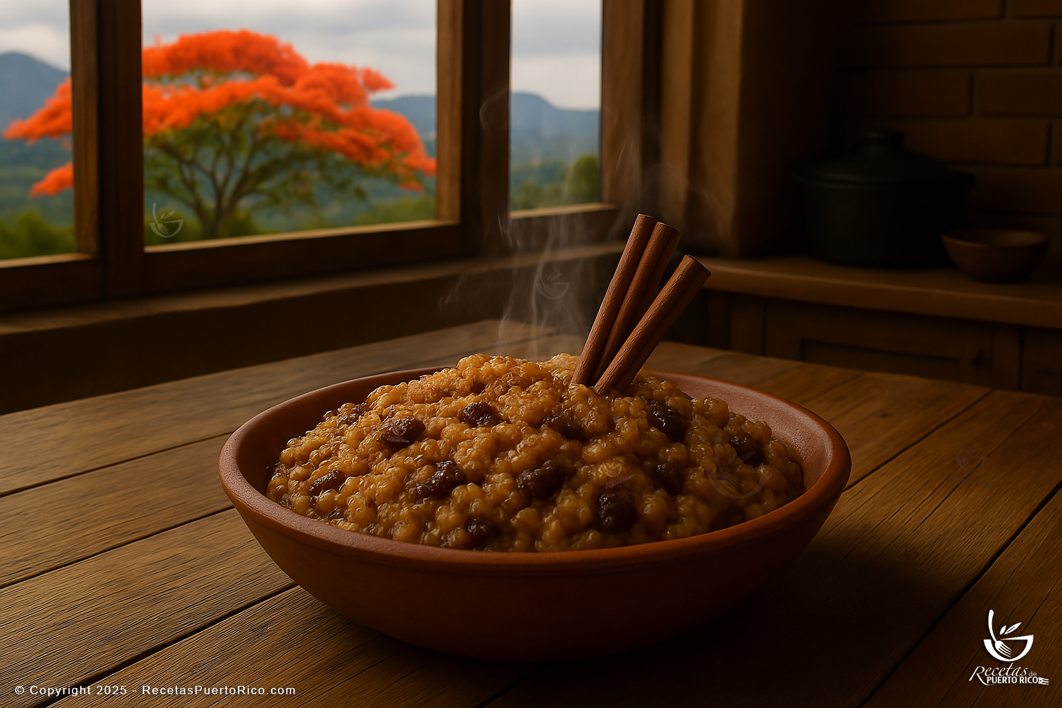 El arroz con dulce hunde sus raíces en las cocinas montañosas de Puerto Rico, donde el jíbaro transformó el modesto arroz en un postre que reconciliaba sabores y escaseces. Inspirado por el arroz con leche español, cada familia adaptó las recetas según lo que producían en su entorno: caña de azúcar, jengibre nativo y harina de casabe. La inserción de manteca de cerdo y especias refleja la fusión entre tradiciones taínas, españolas y africanas. Así nació un plato humilde que, con el tiempo, cobró carácter propio y se convirtió en símbolo de ingenio criollo.