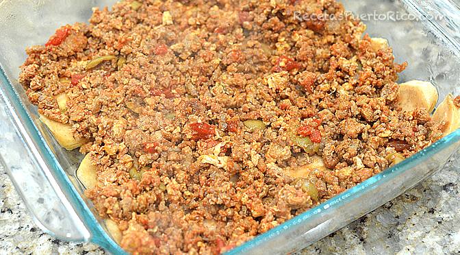 - En una sartén profunda, freír y mover la carne molida hasta que dore y esté ligeramente cocida. (cuando la carne no esté tan rosada).